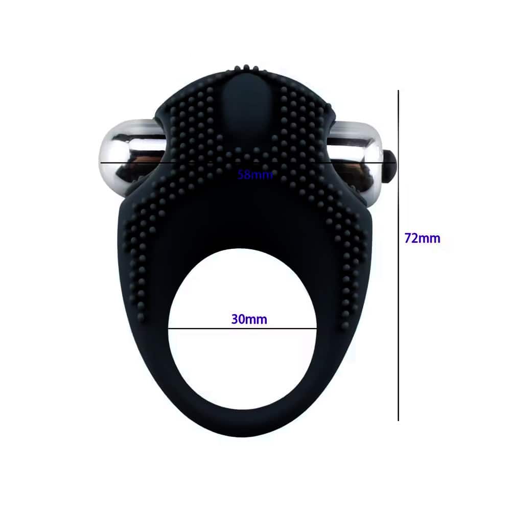 Anillo peneano con estimulacion de clirotis, con agarre testicular para un placer mas profundo. Con su balita vibradora podras disfrutar de su vibracion y estimular la zona de clitoris en una perfecta combinacion.