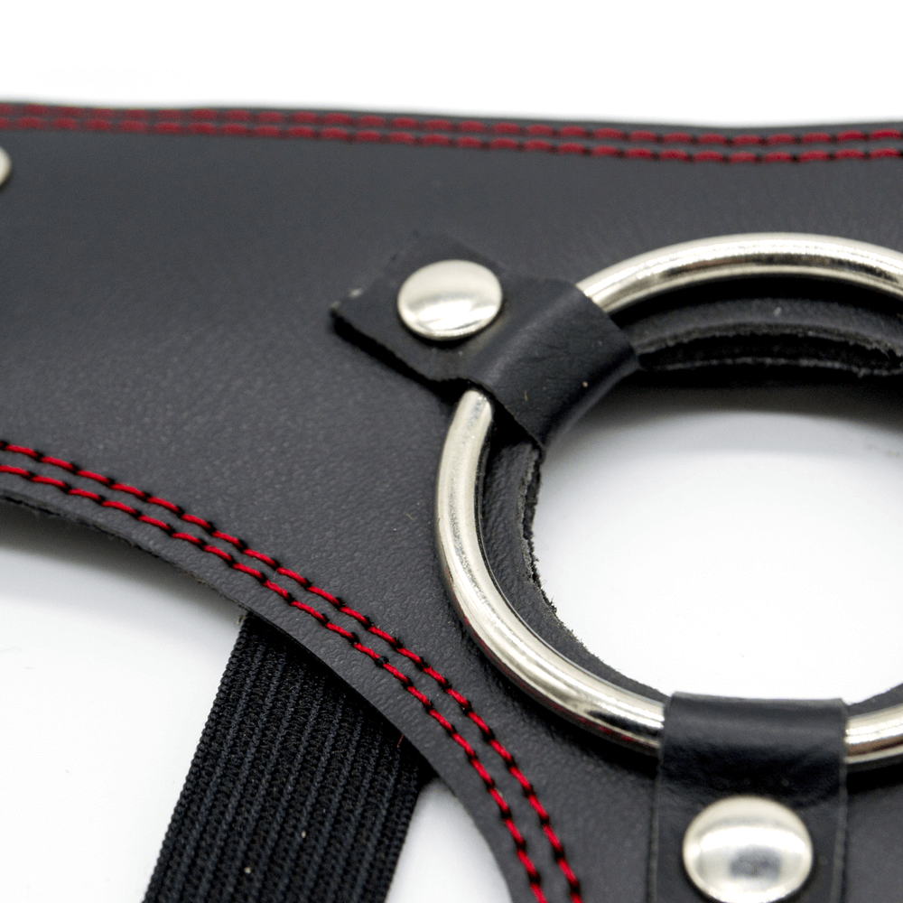 Arnés reforzado de cuero, para penetración externa. Con cinturón regulable cintura para una mejor sujeción al cuerpo. Puede adaptarse a diferentes tipos y tamaños de consoladores. Soporta hasta diámetro: 3.8 cm y 2.2 cm. Medida Argolla: Argolla frontal 4 cm y argolla anal 2.5 cm. Tamaño máximo de cintura: 110 cm. Imagen a modo ilustrativo.