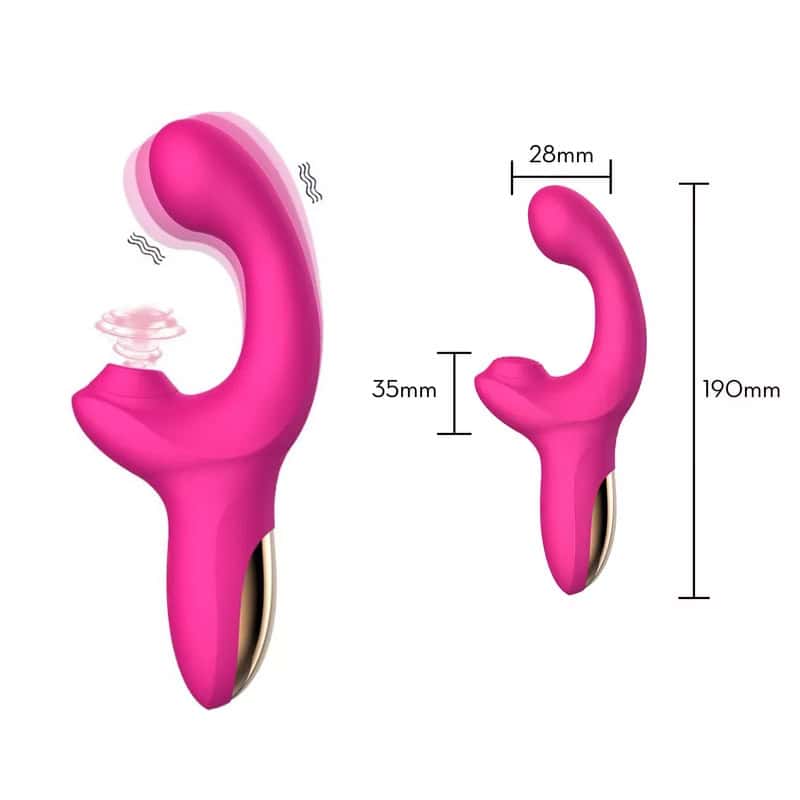 Estimulador doble, con dos motores independientes que podes controlar como quieras. Estimulador de punto G con movimientos y estimulacion de clitors con un perfecto palmador para generar una sensacion de succion ideal para vos. Te animas a probar?