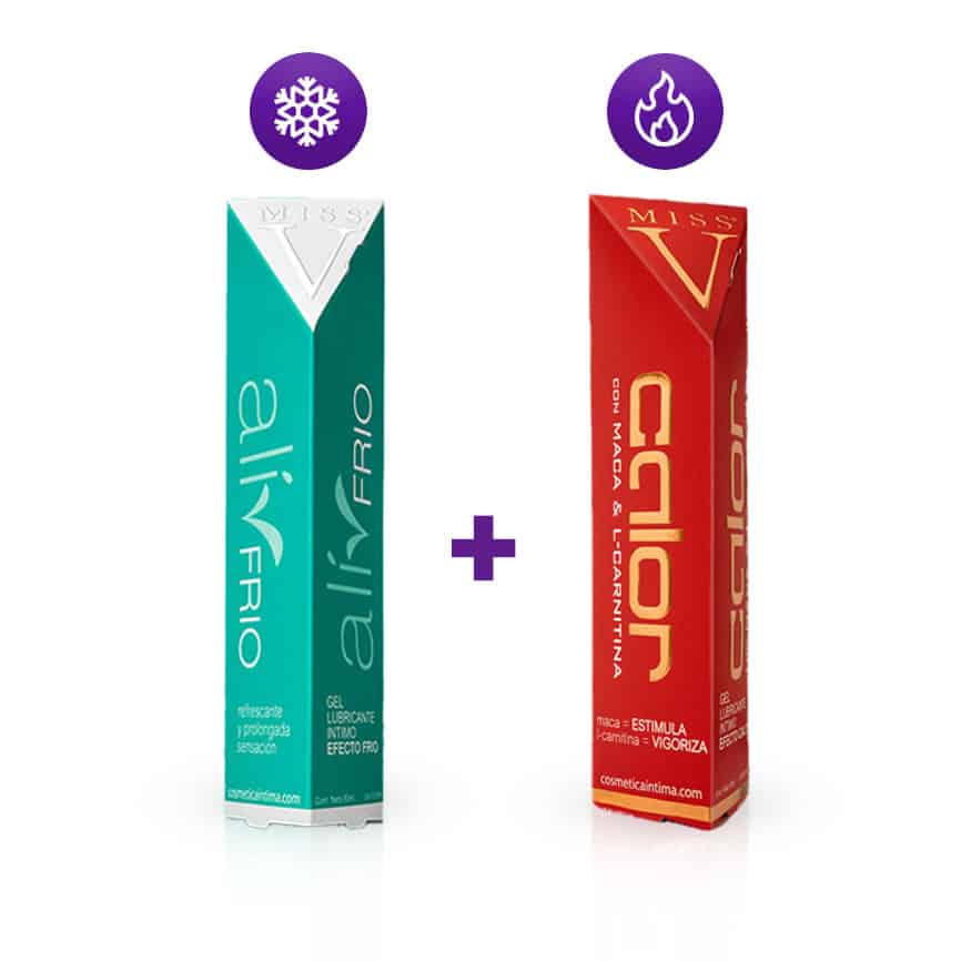 Kit de 2 lubricantes a base de agua marca Miss V. Experimentá con o sin compañía diferentes sensaciones, calor y frío.
