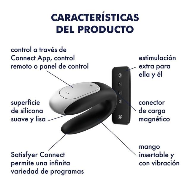 El Satisfyer Double Fun estimula de manera intensa a ambos compañeros durante el sexo. La forma de U se ajusta tanto por dentro como por fuera, lo que garantiza una sensación seductora para el clítoris, el punto G y el pene. Con su propia aplicación, este juguete de alta tecnología está mejorado con juego a distancia y más. Con el Satisfyer Double Fun mejorarás tu vida amorosa gracias a las intensas vibraciones que estimularán a los dos de forma sensual. El vibrador para parejas en la clásica forma de U se utiliza durante el acto sexual y estimula tanto el pene en su totalidad como el punto G a través de su parte insertable. El segundo motor se encuentra oculto en el otro extremo del vibrador de parejas y acaricia el clítoris al mismo tiempo. Además, la diversión en pareja no se detiene ni bajo la ducha ni en la bañera gracias a su acabado impermeable (IPX7). Medidas: 9,35 cm x 4,2 cm x 6,1 cm