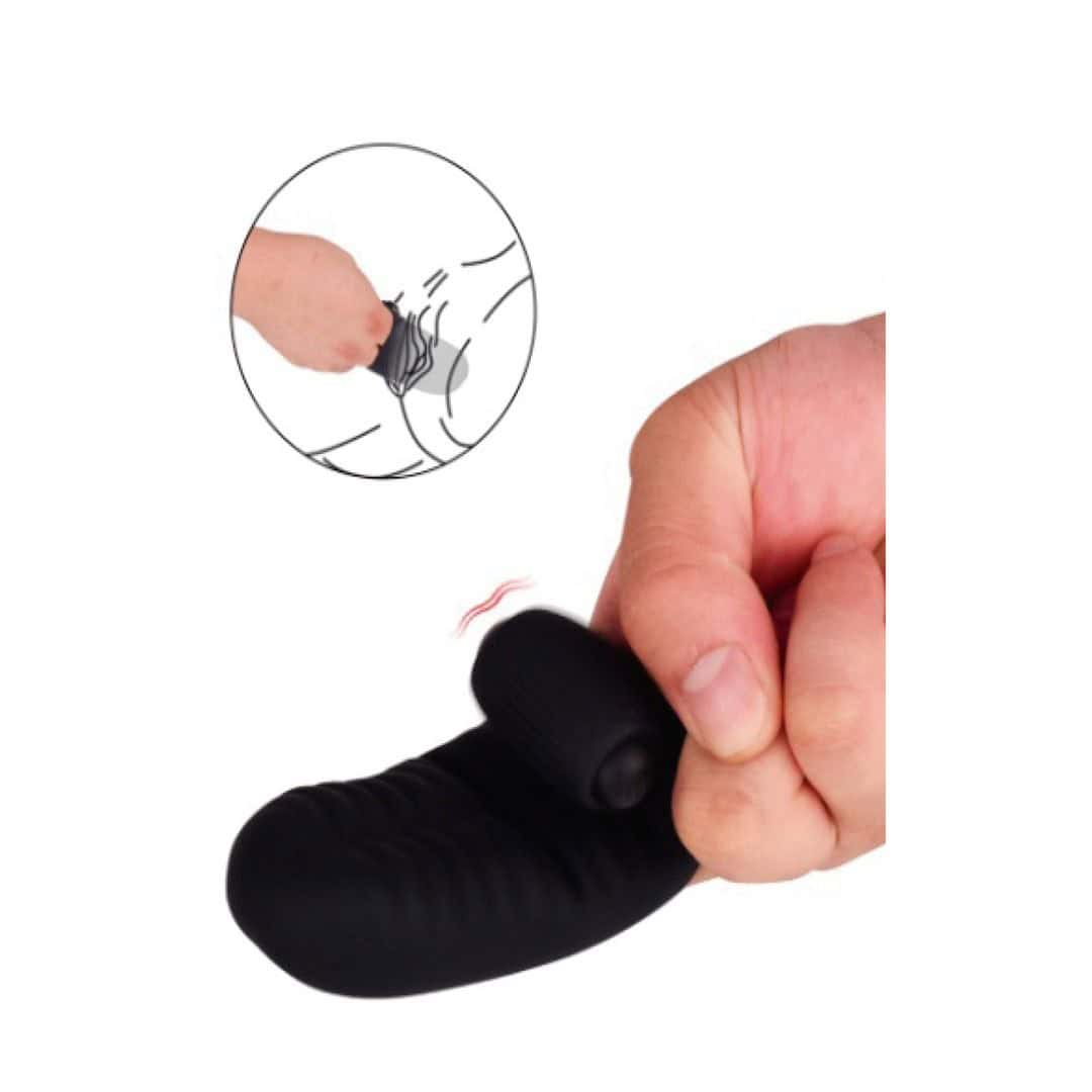 Dedal con vibración, perfecto para estimular el Punto G, introduciendo dos dedos en la vagina trasladando la vibración hacia su interior y quedando la bala de manera mas enérgica apoyada en el clítoris. 1 modo de vibración. Medidas: 4.6 x 2.5 x 9.5 cm.